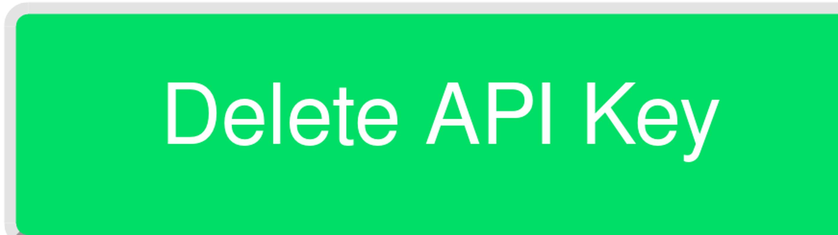 If you're sure you want to delete the API key, click the “Delete API Key” button, usually a green button in the dialog. If you've changed your mind and do not want to delete the API key, click the “X” button in the top right corner to close the dialog.