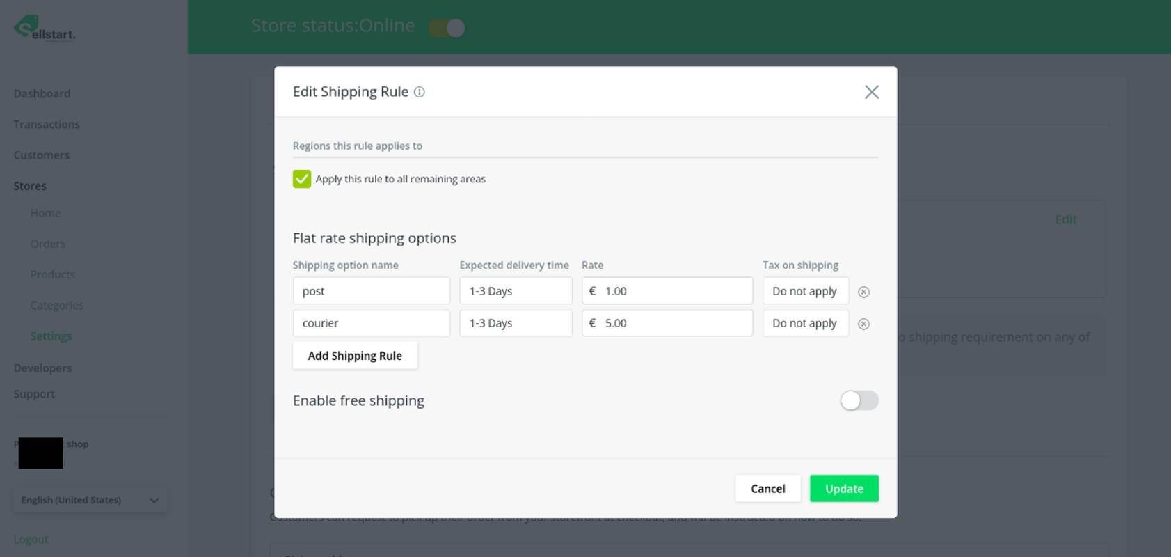 Define shipping rules, shipping methods, and any additional fees that may apply, simply by clicking edit.
